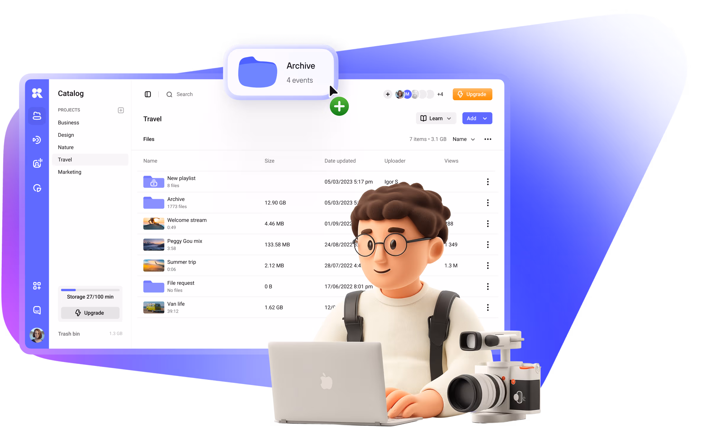 Монетизируйте просмотры без отвлекающих рекомендаций и сторонней рекламы в плеере — его внешний вид выбираете вы. Аналитика удержания и карта внимания подскажут, какой контент интересен и как откалибровать сетку размещений. Единый каталог и быстрый поиск по файлам и тегам ускоряют публикацию материалов и поддерживают порядок в медиатеке.